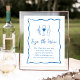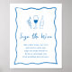Este belo design de inspiração italiana apresenta uma letra cursiva estilo manuscrito verde acentuada com uma borda de fita escrivável em azul para um olhar na Costa Amalfi no verão. Esta elegante placa "assine o vinho" do chá de panela mediterrânico apresenta uma breve redação convidando seus convidados a assinar uma garrafa de vinho para o casal abrir no primeiro aniversário do casamento. Pronto para enquadrar; escolha impressão e envio profissionais ou a opção de download instantâneo para impressão local ou em casa.