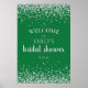 Elegante sinal de boas-vindas do chá de panela verde esmeralda com espumante de diamante prateado confetti. Entre em contato conosco para obter ajuda sobre a personalização ou produtos correspondentes.