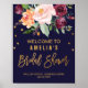 Este poster de boas-vindas ao chá de panela floral de outono é perfeito para um chá de casamento outono. O design apresenta um buquê espantoso de pincel, pêssego laranja, e flores marsala burgundy com falsa tipografia de folha de ouro e confete. Personalize o poster com o nome da noiva a ser, e a data e o local do chá. Nota: Este design não apresenta folha de ouro real. É um gráfico de alta qualidade feito para se parecer com folhas de ouro.
