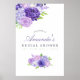 Poster de boas-vindas com chá de panela floral de aquarela, com cor ultra violeta de 2018 e tons de roxo compatíveis. As flores incluem hidrangea, lavanda, peonias e rosas.