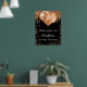 Um poster de boas-vindas para um Chá de panela giro e glamouroso. Um fundo na moda preto decorado com pingos de brilho sujo, aparência de pingar tinta, balões e pó de ouro sujo. Personalize e adicione um nome. Traseira: sem design