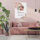 Um poster de boas-vindas para um chá de panela elegante e moderno. Fundo branco, decorado com grama pampas estilo "boho" e ouro rosa e flores cor-de-rosa pinceladas. Personalize e adicione uma dentro de foto ao quadro de arco, nome.