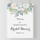 Este poster de boas-vindas ao eucalipto tropical é perfeito para um chá de panela de destino. A design apresenta rosas roxas, brancas, azuis e cor-de-rosa deslumbrantes aninhados num belo buquê de folhas verdes de eucalipto.
