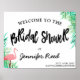 Poster encantador de boas-vindas com um flamingo e um verde brilhante, desenhado à mão e recheado com textura de aquarela impressa. Adicione a noiva ao nome, à data do chá de panela e, se necessário, à hashtag!
