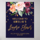 Este poster de boas-vindas ao chá floral de outono é perfeito para um chá casamento outono. O design apresenta um buquê espantoso de pincel, pêssego laranja, e flores marsala burgundy com falsa tipografia de folha de ouro e confete. Personalize o poster com o nome da noiva a ser, e a data e o local do chá. Nota: Este design não apresenta folha de ouro real. É um gráfico de alta qualidade feito para se parecer com folhas de ouro.