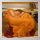 Uma alegoria para Flaming June. Retrato vítreo de uma bela ruiva vestindo um vestido cor de laranja vibrante de tecido translúcido. Ela repousa num banco de mármore com mais tecido como almofada. No fundo, a luz da lua é refletida pelo oceano. De uma pintura original do século XIX (1895) de Frederic Leighton. Todos os direitos reservados © 2015 padre art