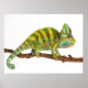 Fotografia vívida e de cor brilhante de um camaleão com aspecto rabugento.