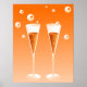 Ilustração de dois copos de champanhe colocados lado a lado com bolhas retrorreflectoras flutuando ao redor dos óculos. Prontos para brindar para uma ocasião especial como um casamento ou aniversário. Imagem disponível em vários presentes e produtos.