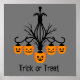 Design gótico de um candelabro preto com abóboras esculpidas. Na moda gótico design de halloween com um tema preto e laranja. Feliz Dia das Bruxas