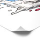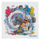 A bold, humorous cartoon illustration featuring a frantic chef with a large mustache, wearing a classic white toque and uniform splattered with bright primary colors. He struggles to control an oversized gray stand mixer as an explosive burst of white batter or frosting erupts violently from the bowl. Vivid splashes of magenta, cyan, and yellow paint fly across a light blue background, while overturned mixing bowls float mid-air, amplifying the sense of chaos. Rendered in a graphic, high-contrast style with thick black outlines, this energetic artwork captures culinary mayhem with playful, comedic flair.
