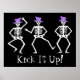 Estes esqueletos dançantes fazem um excelente de Halloween poster. Divertido em pendurar na porta ou nas paredes para festas ou truques ou tratadores. Três esqueletos estão dançando um jig em um fundo preto com as palavras personalizáveis "Kick it Up". Você pode mudar para seu próprio ditado ou nomes. A mão pintou a arte original apresenta esqueletos dançantes com chapéu roxo nos crânios e está nas cores preto e branco com roxo. Procure meus outros produtos com esta arte para produtos de luxo para o Dia das Bruxas, incluindo convites, cartões de saudação, camisetas, capas eletrônicas e muito mais. Totalmente personalizável para personalização. A arte original é de Phyllis Dobbs que deseja um feliz e brilhante Dia das Bruxas.