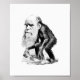 Este design de safra apresenta Charles Darwin como um macaco. A imagem é baseada numa caricatura publicada numa revista sátira de 1871.