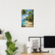 Mergulhe em uma obra-prima de arte digital que o transporta para um reino de puro relaxamento. Uma charmosa praia arenosa desdobra-se diante dos vossos olhos, num paraíso tropical onde as águas azuis beijam a costa. Palmeiras fluem em ritmo com a brisa suave, lançando sombras apavoradas na areia beijada ao sol. Esta poster capta a essência da tranquilidade e convida-o a fugir para um paraíso costeiro.