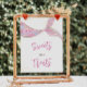 Mergulhe em um mundo de doçura com nosso charmoso cartaz de "Doces e Tratamentos", apresentando uma adorável design de cauda de sereia em matizes roxas. Este letreiro editável adiciona um toque caprichoso ao seu evento enquanto orienta os hóspedes a se dedicarem a sobremesas e guloseimas deliciosas. Personalize-o para se adequar à vibração do seu partido e fazer a sua mesa de sobremesa brilhar como um trovo de tesouro debaixo do mar!