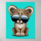Este adorável design do artista Jeff Bartels apresenta um pequeno filhote de puma de bebê vestindo óculos de sol grandes aviadores. As características de tamanho excessivo, juntamente com os detalhes no crio de pele, uma combinação única de desenho animado e aparência realista. Este legal e fofo design é perfeito para todos os amantes de os animais.