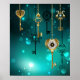 Poster Chaves de Esqueleto Anticas em Fundo Verde