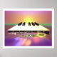 Poster com meu trabalho de arte de teclas afiadas de piano flutuando na água.