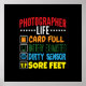 Lista de verificação de vida do fotógrafo - Cheio da placa, bateria esgotada, sensor sujo e pés de armazenamento. Ícone colorido design para adicionar aos acessórios e equipamentos de um fotógrafo. > Ideia engraçada para um estudante de fotografia inicial, amador ou instrutor profissional. > Personalizável: Adicione seu próprio nome personalizado ou texto.