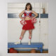 Poster Cheerleader em pé no banco perto das bolas de basq