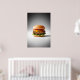 Um cheeseburger que parece estar envolto com luz branca. O cheeseburger parece delicioso para comer como uma refeição. Pode ser um design excelente para usar na sua poster, especialmente se você gosta de comer cheeseburgers também!