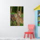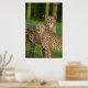 Duas chitas estão ombro-a-ombro em meio a árvores altas e erva exuberante, seus corpos dormentes enfiados contra o pano de fundo verdejante