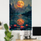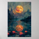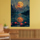 Poster Cheio Moom e Lago com Pintura de Flores de Lotus