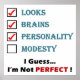 Eu tenho a aparência, o cérebro e a personalidade, mas não a modéstia. Acho que não sou perfeito