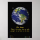Essa poster tem uma imagem fotográfica da Terra cheio mostrando o hemisfério oeste lançado ao dominio público pela NASA. Inclui a mensagem ambientalmente consciente, "Nossa casa: Aproveite, mas por favor limpe-se depois de si mesmo, todos nós temos que viver aqui".
