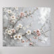 As flores deliciadas de cereja, em cor-de-rosa e branco macio, são dispostas contra um fundo texturizado, criando uma composição serena e elegante