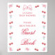 Deixe um pouco de amor para o bebê ser! 🍒 Este encantador poster de livro convidado, que inclui delicadas cerejas aquáticas e florais cor-de-rosa macio, convida os convidados a assinarem os seus nomes e a partilharem mensagens sentidas. Um belo guardião para os pais quererem ser queridos para sempre!