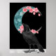 Cherry Blossom Crescent Moon and Crow Poster ^