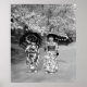 Antiga foto de 1920 de crianças japonesas, em guarda-chuvas de carregando tradicional, caminhando entre flores de cereja. Tidal Basin, Washington, D.C. Fotografia tirada em 28 de março de 1925. Coleção Nacional de Fotografias. Meio de origem LOC: vidro negativo.