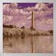 Este é um desenho abstrato do Monumento de Washington rodeado por flores de cereja num dia nublado.