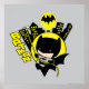 Veja Chibi Batman escalando os edifícios altos da Cidade de Gotham usando seu gancho de lutas para responder ao chamado do Sinal de Bat.