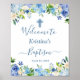 Poster Chic Blue Hydrangea Floral Baptism Sinal de boas-v