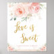 Poster Chic Blush Rosa Floral Amor é Doce Pegue um Tratam