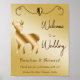 Um elegante quadro de ouro de casamento que derrubou a poster com um disco de ouro e veado brilhante num fundo de textura dourada.