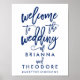 Sinal de casamento de boas-vindas personalizado com nomes e hashtag