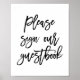 Sinal moderno e chic que diz "Por favor assine nosso guia".