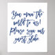 Sinal moderno e chic que diz: "Você quer dizer o mundo para nós! Por favor assine nosso globo convidado" no marinho