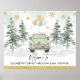 Bipe, Honk, Shout e Wave! Sinal de boas-vindas único, que inclui elegantes pinheiros com aquarela, paisagem com neve e um carro vintage chic