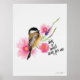 Bela ave-de-bico-de-cabeça-branca pintada em aquarela com flores rosa e roxo pintadas pela artista Jennifer Steffen. O terceiro filhote numa série de três. A arte está disponível impressa em uma variedade de produtos, incluindo canecas, azulejos, posters e telas de tela, sacos de tote, quebra-cabeça, cartões de saudação, decoração domiciliar e muito mais! Design de JennsEmporium.