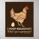 Chicken Poops Café da Manhã Design engraçado com uma galinha marrom / galinha que colocou um ovo marrom. "Eu faço café da manhã! Qual é a sua superpotência?" Galinhas, como todos os pássaros, têm uma abertura de solteiro chamada cloaca através da qual excretam, acasalam e põem ovos. Então você poderia dizer que os ovos saem do vagabundo de uma galinha E é estranho, já que o mesmo buraco serve a ambos os propósitos. MAS, quando sai um ovo, a Cloaca de galinha é virada dentro para fora para que o ovo não possa entrar em contato com os intestinos (malícia). Agora você pode dizer aos seus filhos ou amigos de onde vêm os ovos de galinha!