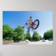 Cavaleiro Bmx executando um chicote traseiro em uma rampa de cano quater em um skate park.