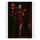 Uma poster cinematográfica retrorreflectora que apresenta uma assassina chinesa mortal e bela num qipao vermelho profundo (cheongsam) com uma fenda elevada, sutilmente bordada com códigos ocultos ou motivos dragões. 🎁 à procura de um presente único? Essa misteriosa beleza encantará qualquer amante de arte.
