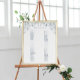 Gráfico de assentos organizado por nomes próprios. Folhas e flores delicadas e pequenas com texto e cor de fundo editáveis. Este layout mostra 50 nomes em cada coluna; escolha um tamanho menor para menos pessoas e edite o tamanho do texto no editor de cheios em um computador ou tablet.