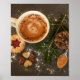 Design apresenta uma fotografia de uma bebida de Natal e decoração.
