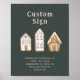 Whimsical Christmas theme baby shower custom sign. Illustration of gingerbread houses with blue accent.
