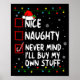 Poster Christmas Nice Naughty Never Mind I'll Buy My Own