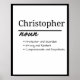 Apresentando o "Christopher, Boy Personalised Name Definition Poster" - uma forma única e significativa de celebrar o nome Christopher. Este poster personalizável apresenta uma definição detalhada do nome Christopher, destacando suas origens e significância. Perfeito para decorar o quarto de uma criança, um escritório doméstico, ou como um presente pensativo, esta poster combina estilo e sentimento. Feito com materiais de alta qualidade, o poster está disponível em vários tamanhos para ajustado de qualquer espaço. O elegante design e elementos personalizáveis permitem que você adicione um toque pessoal, fazer-o como um manejo apreciado por anos. Etiquetas de três palavras mais procuradas: definição personalizada de nome, arte personalizada de parede, ideia única de presente, decoração elegante de sala, poster de definição personalizada, impressão de alta qualidade, significado de Christopher, escolha perfeita de presentes, decoração personalizada de casa, nome que significa poster, arte de na moda de parede, arte personalizada de nomes, design personalizada, decor elegante de parede, decoração única de casa.